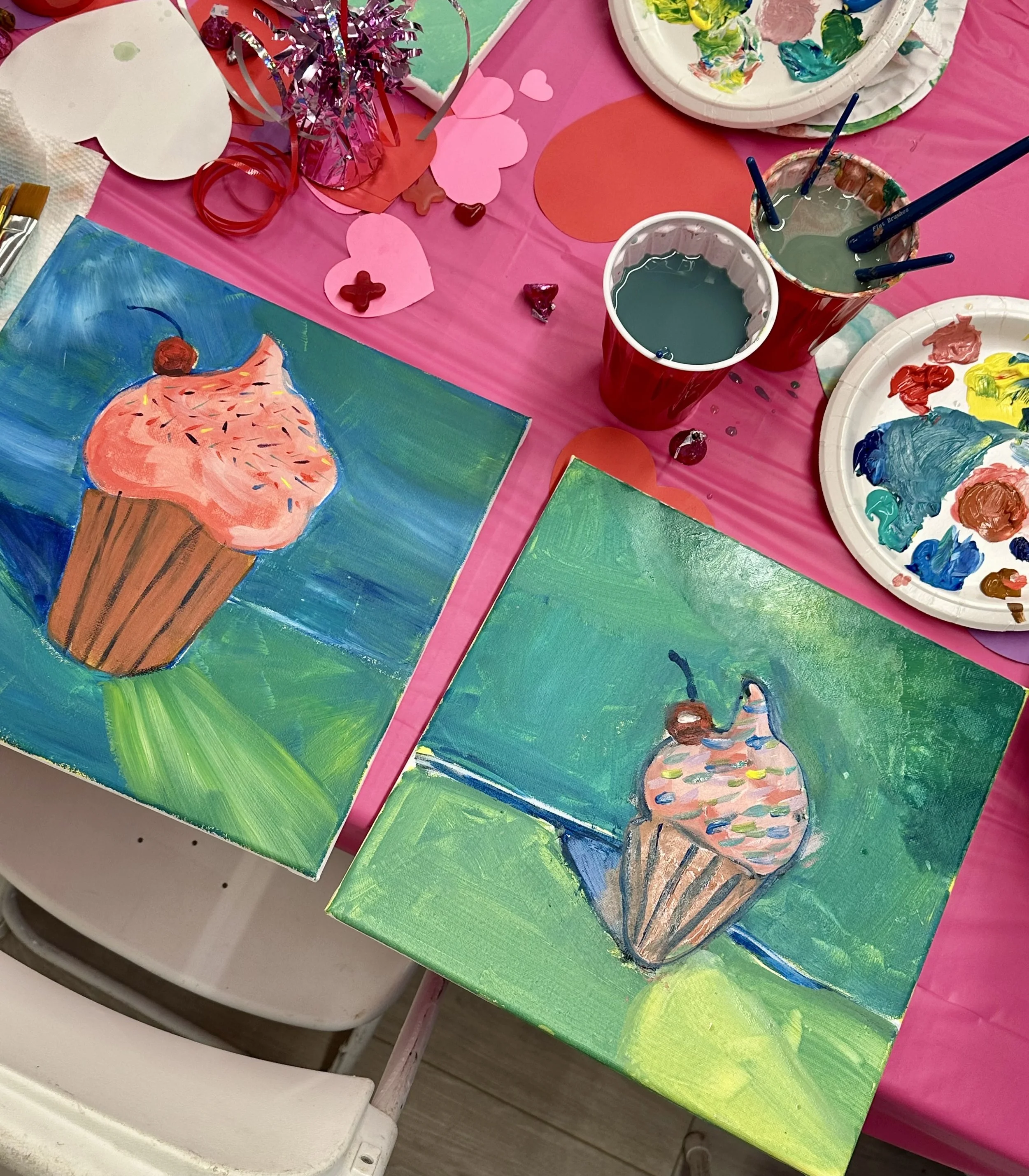 Perfect for birthday parties, “Mommy & Me” gatherings, Girl Scout badge workshops, parents’ nights out, school fundraisers, and more — no experience is necessary. We work together to select a painting that suits your group. Choose from my Social Studio repertoire, or I can design a custom piece to match your theme.